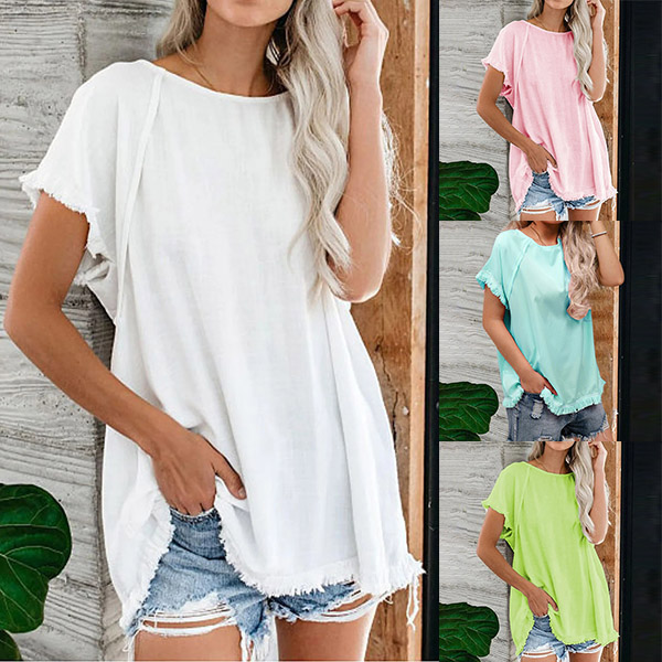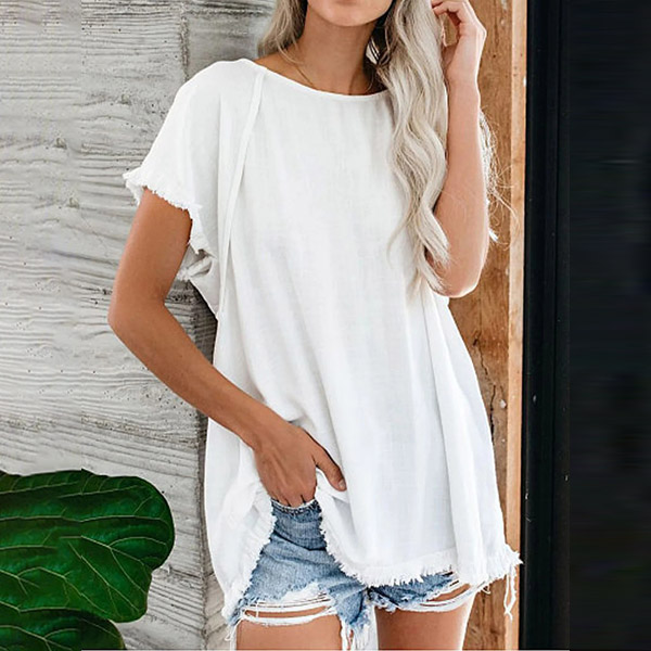 Fashion Solid Color Tassel Short Sleeve Round Neck Loose T-shirt
