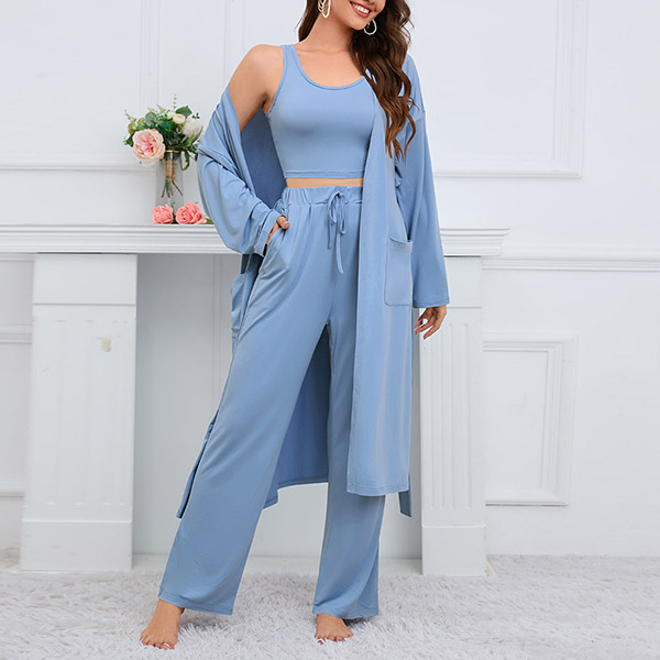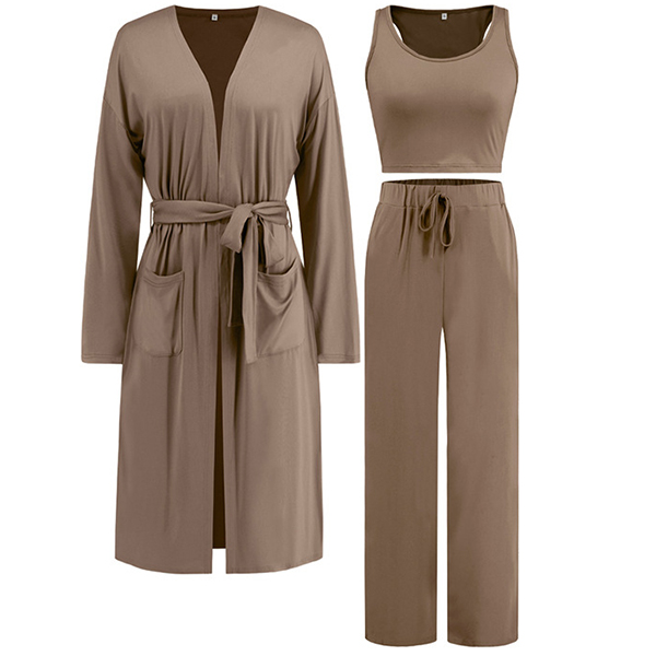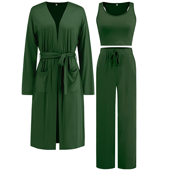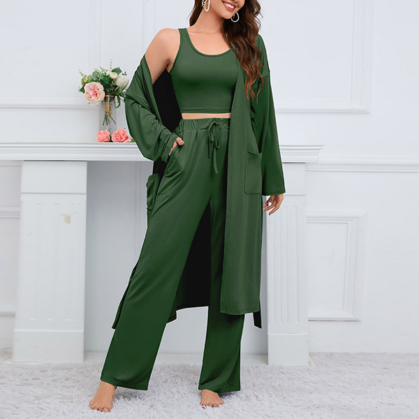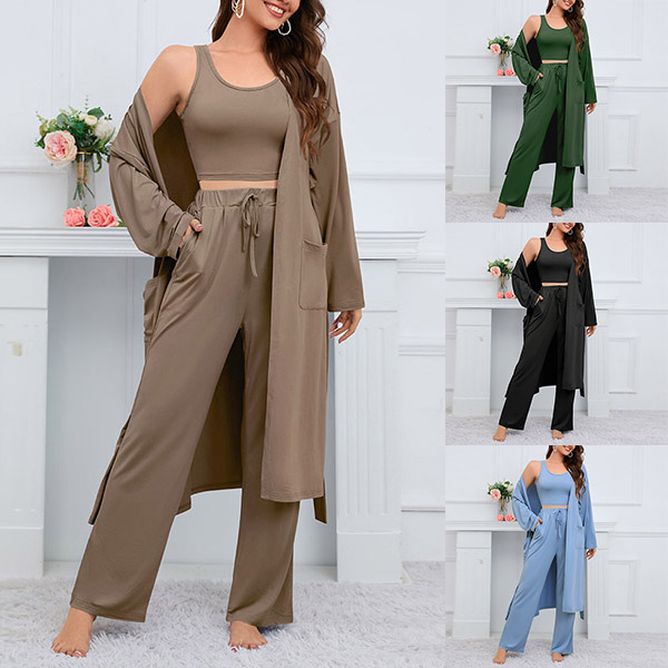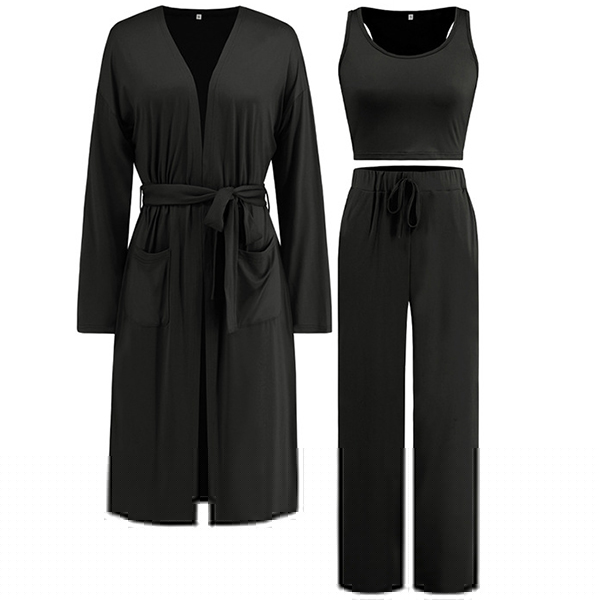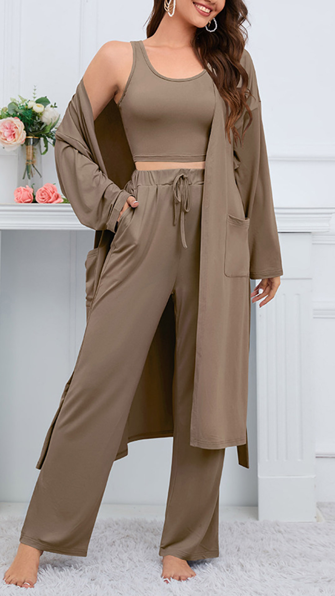 Fashion Solid Color Three-piece Set Consist of Cardigan, Crop Top, and Drawstring Pants