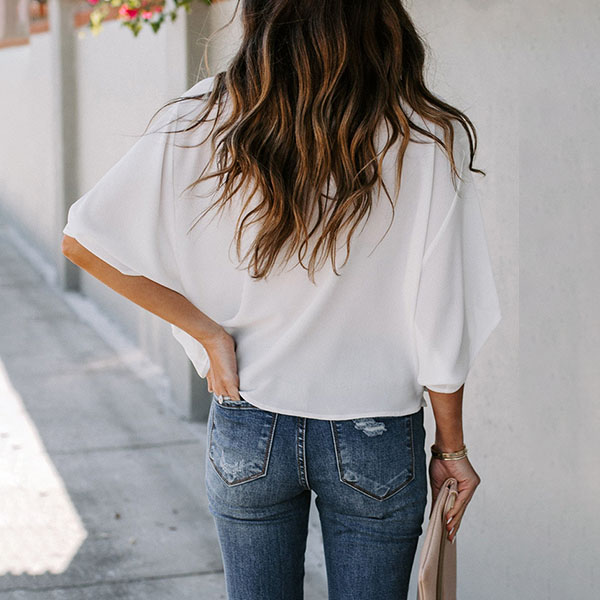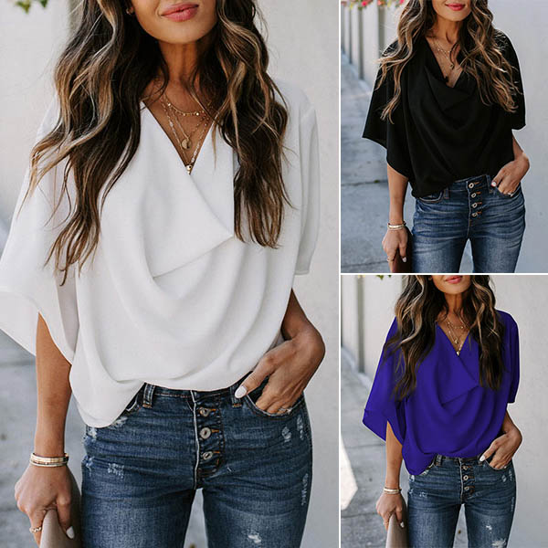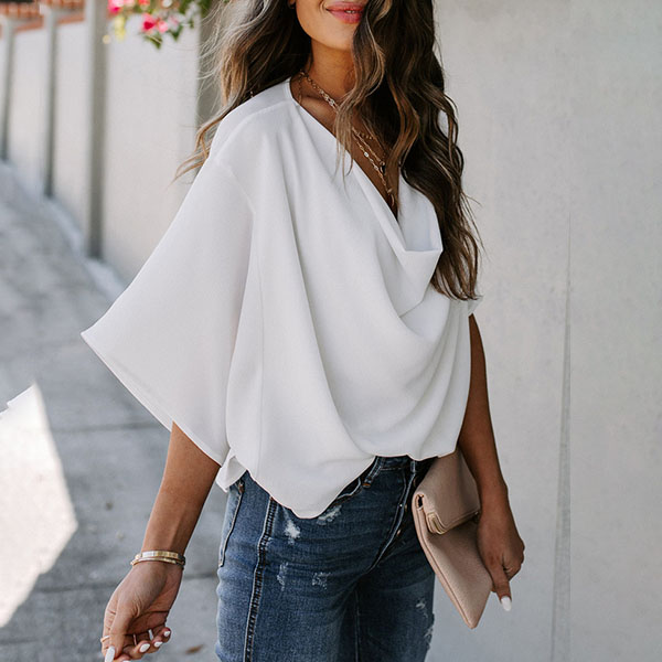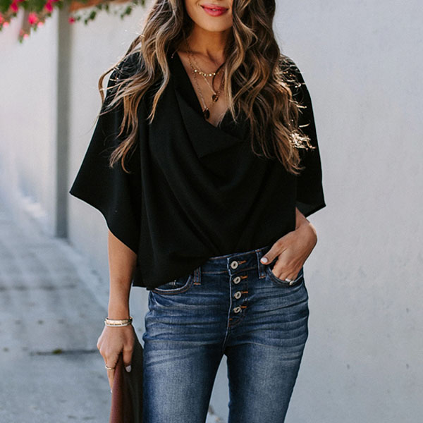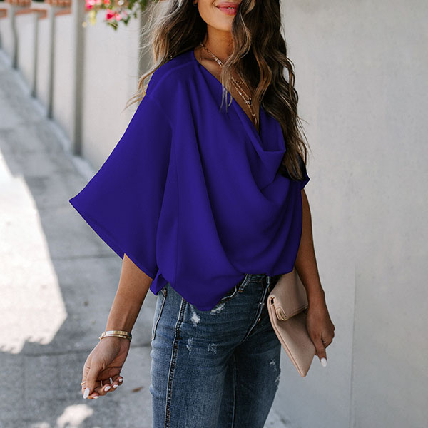 Fashion Solid Color Trumpet Sleeve Cowl Neck Top