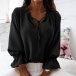 Fashion Solid Color Trumpet Sleeve Lace-up V-neck Top