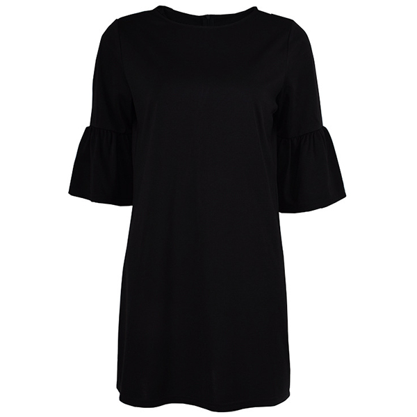 Solid color style,designed with trumpet sleeve,round neck and a relaxed-fit silhouette,this dress can keep you