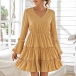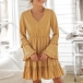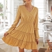If you are looking for a proper dress for your night dating or weekend out,this delicate dress can be your wise choice. Solid color style,the trumpet sleeve and v-neck design will make this piece look more attractive,while the elastic waist design can showcase your figure. Dress it up with your sexy heels for a beautiful look.