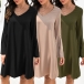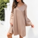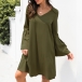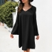 Fashion Solid Color Trumpet Sleeve V-neck Loose Dress