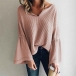 Fashion Solid Color Trumpet Sleeve V-neck Top
