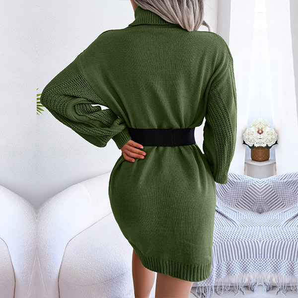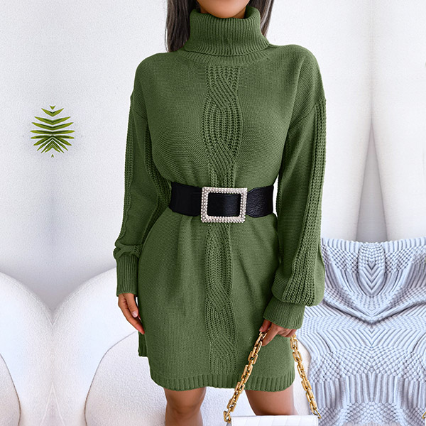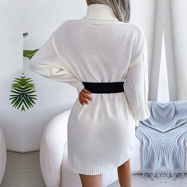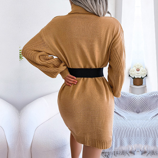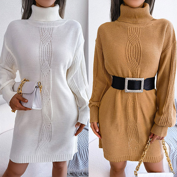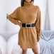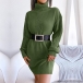Fashion Solid Color Turtle Neck Long Sleeve Knitted Dress