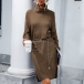 Fashion Solid Color Turtle Neck Long Sleeve Slit Sweater Dress