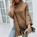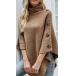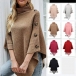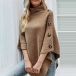 Fashion Solid Color Turtleneck Buttoned Irregular Hemline Knitted Cape