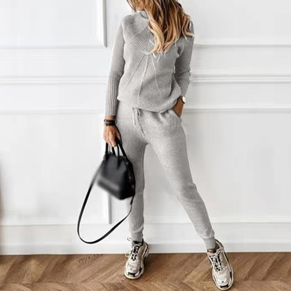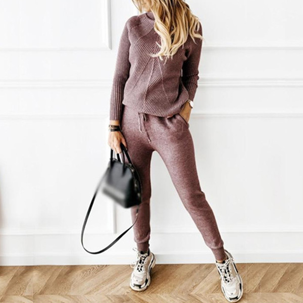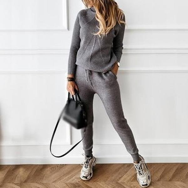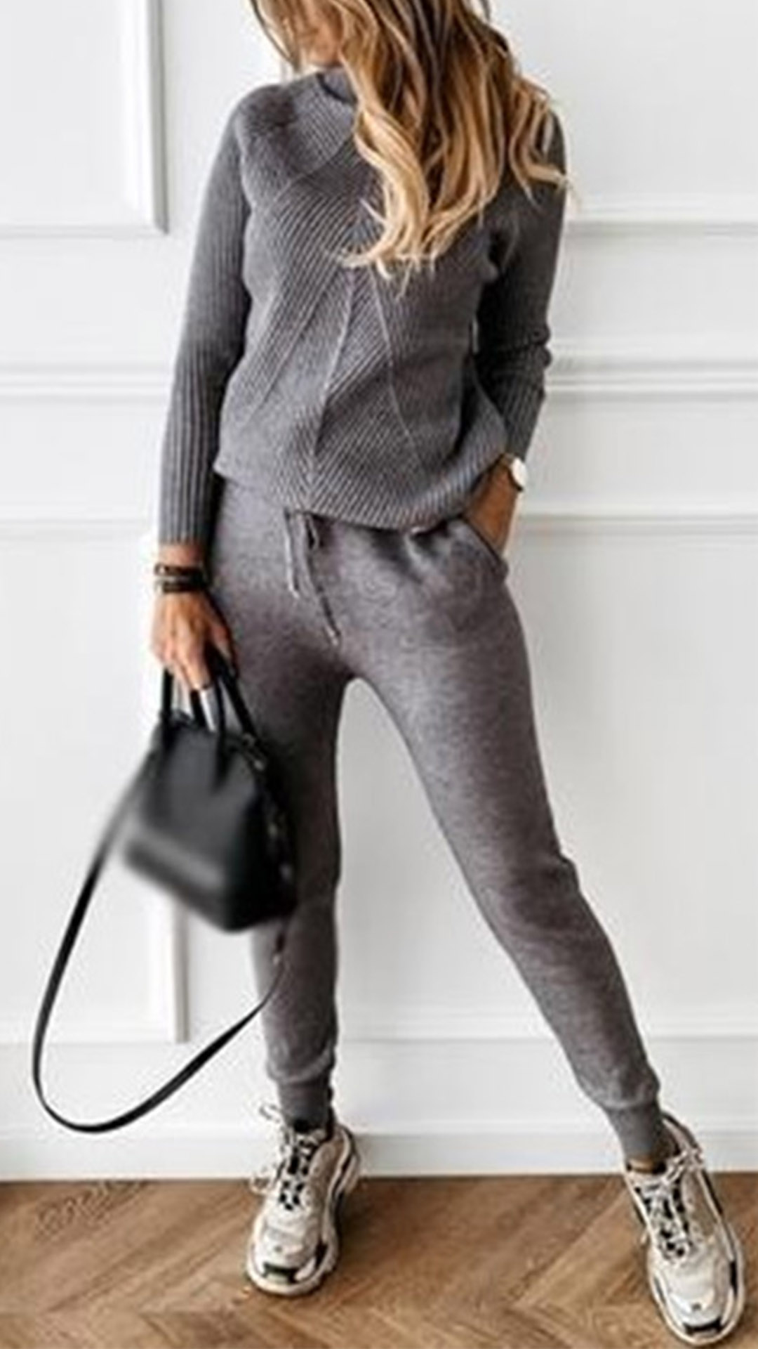 Not only can keep you warm,but also can update your style,that's why we suggest you choosing this knit two-piece set. Solid color style,including a long sleeve turtleneck top and a pants,simple in design style,but it can exude your style and personality. Your good choice when the days get a little cold.