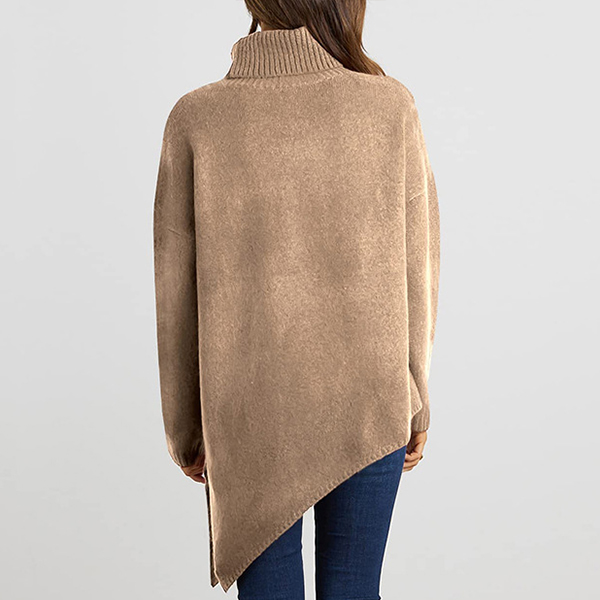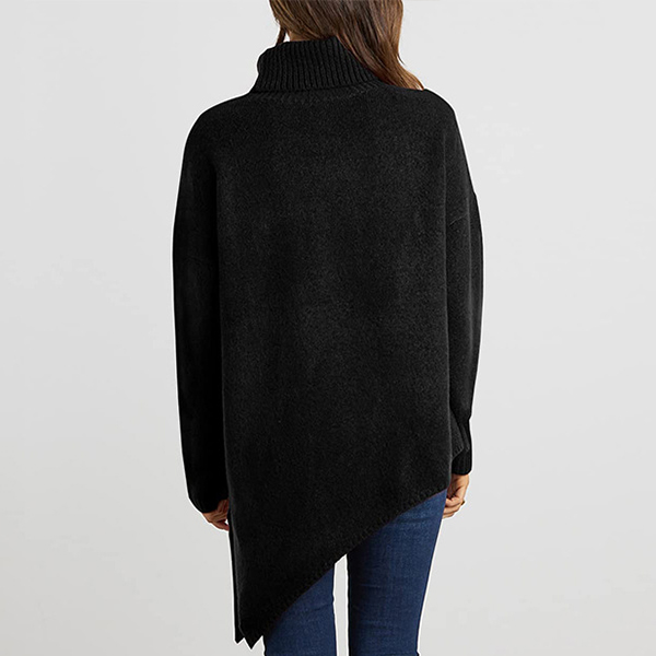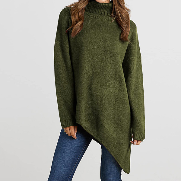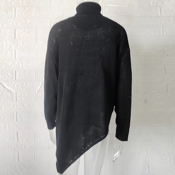 Fashion Solid Color Turtleneck Long Sleeve Irregular Hemline Sweater