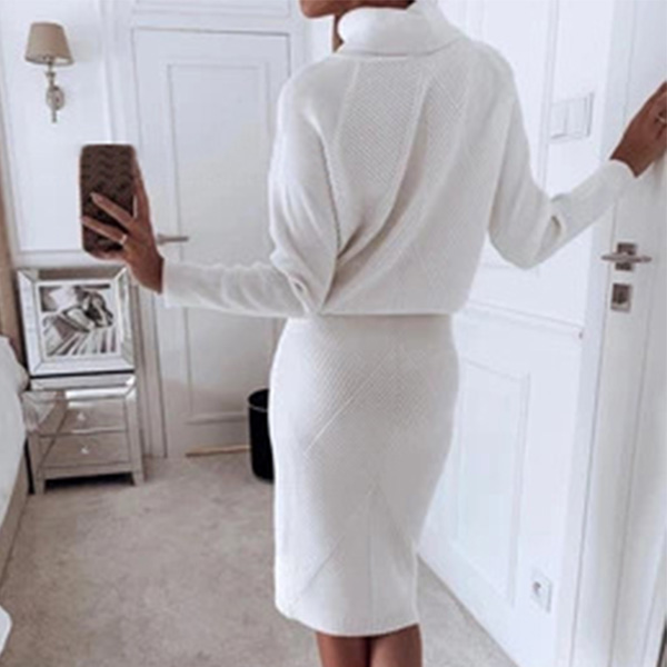 Fashion Solid Color Turtleneck Long Sleeve Knit Top + Skirt Two-piece Set