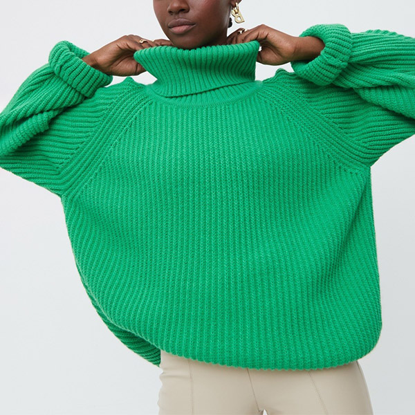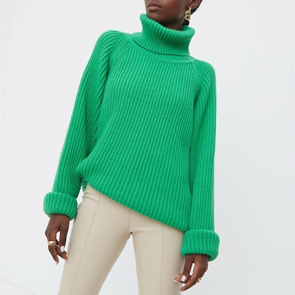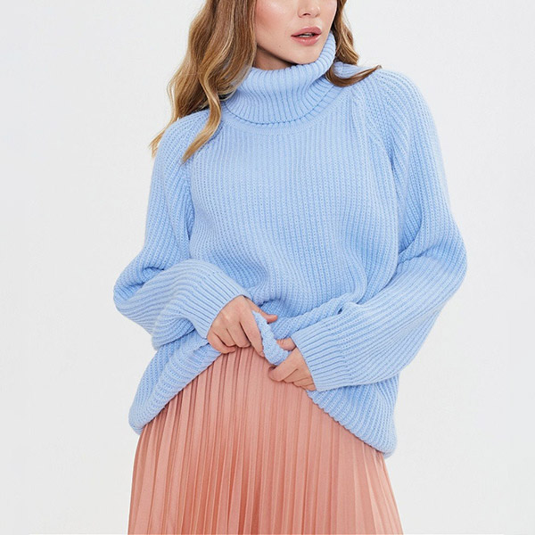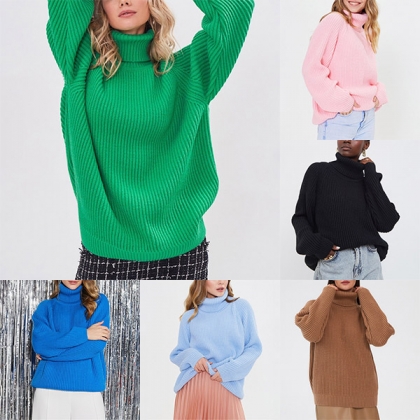 Fashion Solid Color Turtleneck Long Sleeve Knitted Sweater