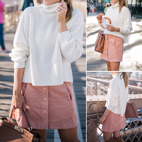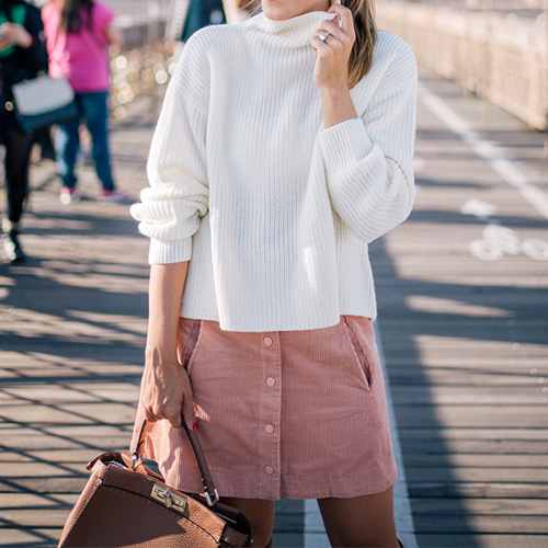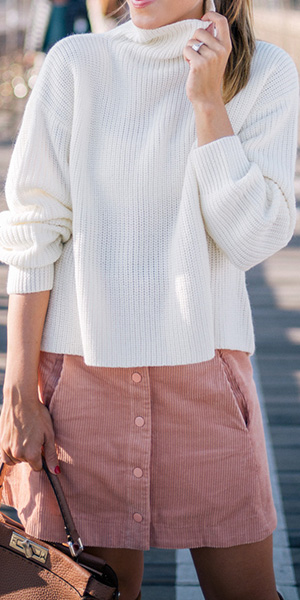A clean and neat white color can perfect show you sun-kissed skin. Concise style, with turtleneck,