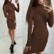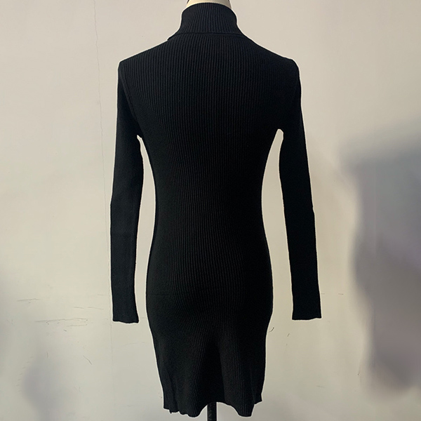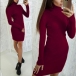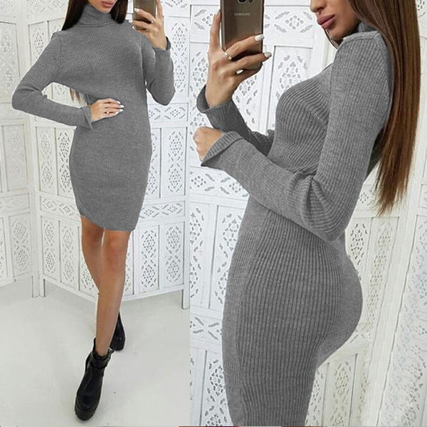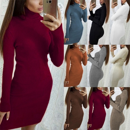 Fashion Solid Color Turtleneck Long Sleeve Ribbed Knitted Bodycon Dress