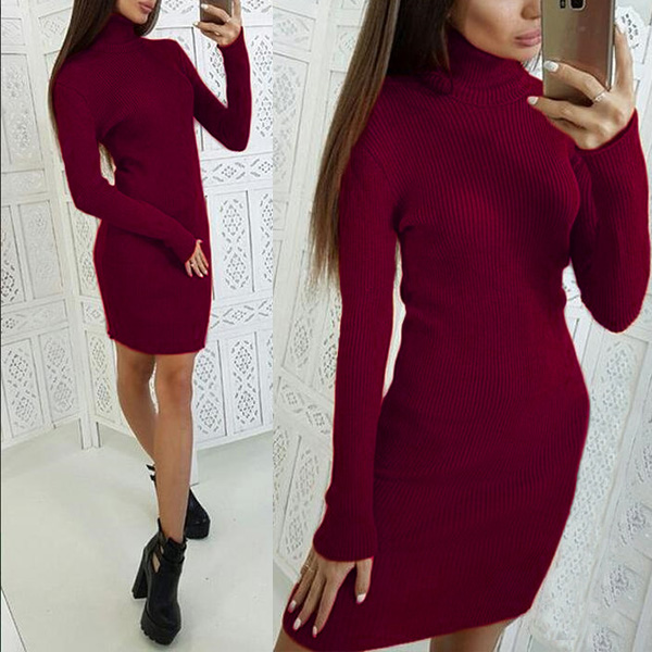 How about this bodycon ribbed dress? The turtleneck adds a chic and elegant touch while providing extra warmth for cooler weather. Crafted from ribbed knitted fabric, it provides a form-fitting and comfortable fit that hugs your curves in all the right places.