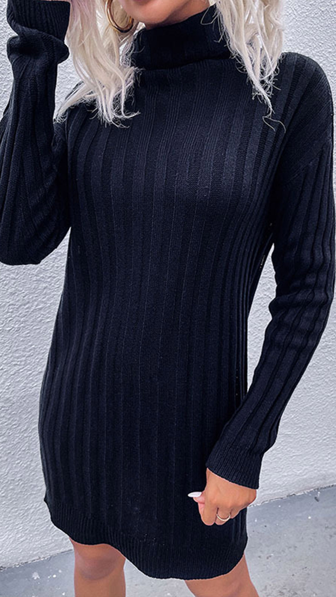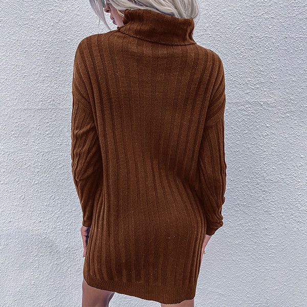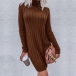 Fashion Solid Color Turtleneck Long Sleeve Ribbed Sweater Dress