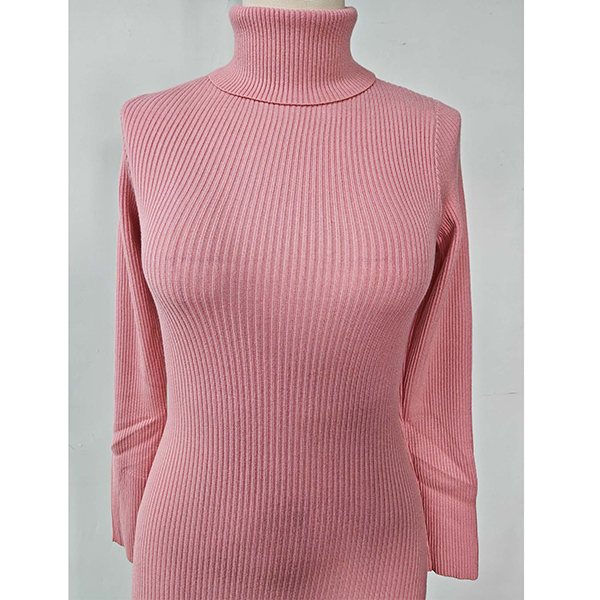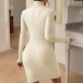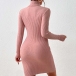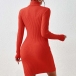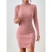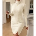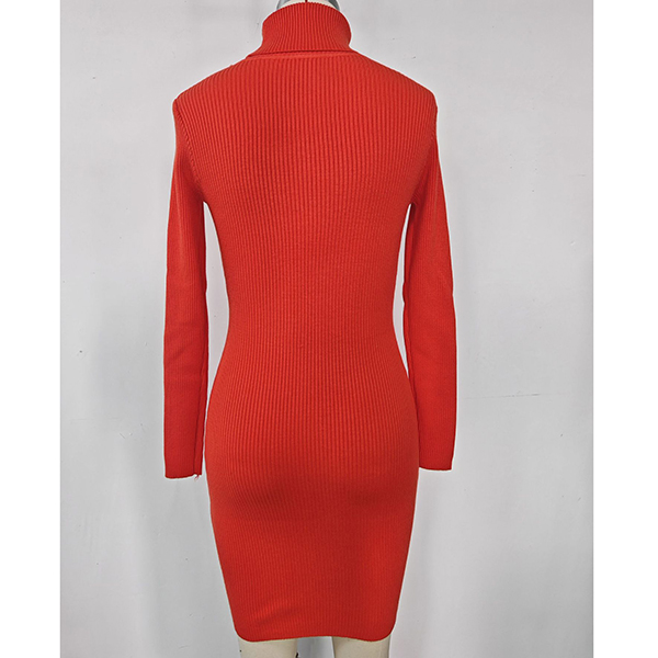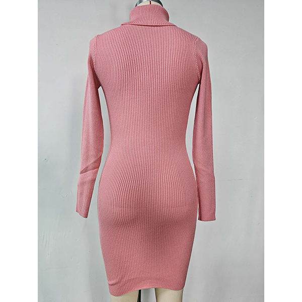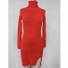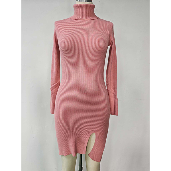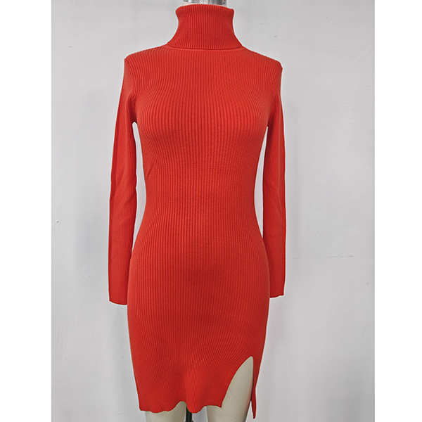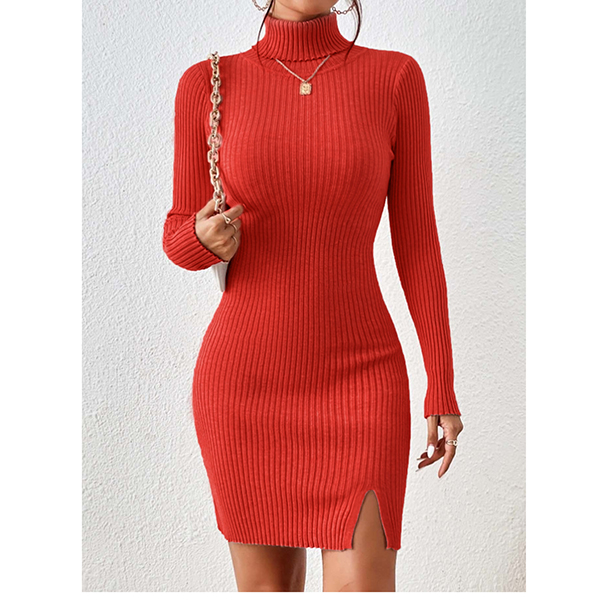 Fashion Solid Color Turtleneck Long Sleeve Side Slit Ribbed Dress