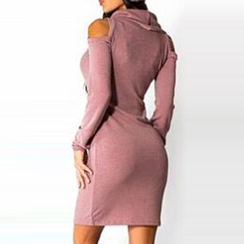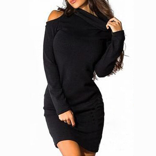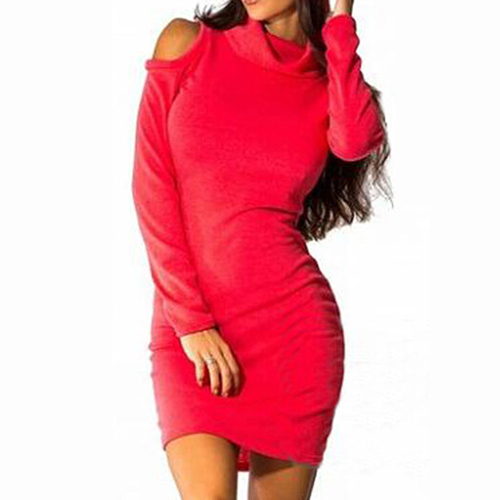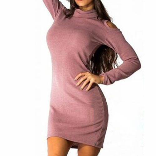 This dress is solid color while it is also designed with a turtleneck and open-shoulder long sleeves, which make it look very sexy and fashion.