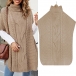 Fashion Solid Color Turtleneck Short Sleeve Slit Knitted Pullover Sweater