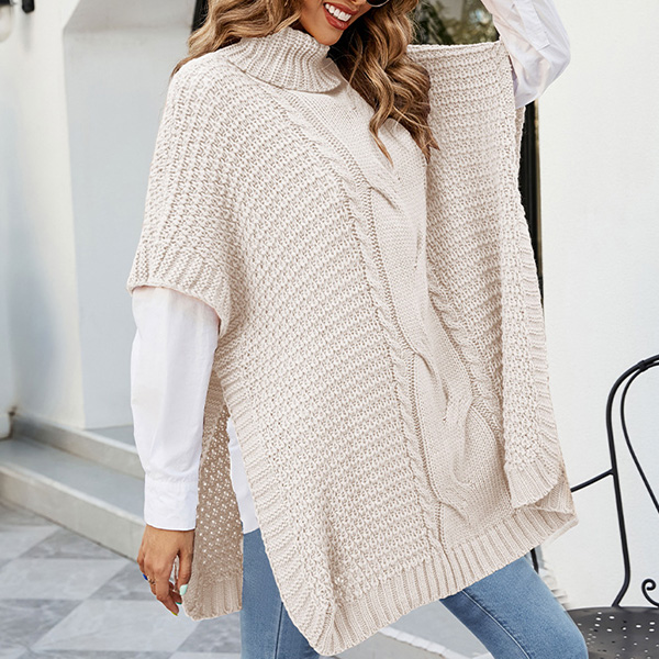 This Fashion Knitted Pullover Sweater is the perfect addition to your wardrobe. It features a turtleneck, short sleeves, and a slit at both side. The sweater is made from a soft, lightweight knit that is perfect for layering.