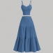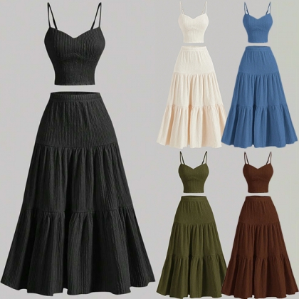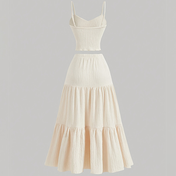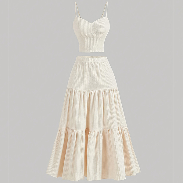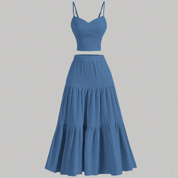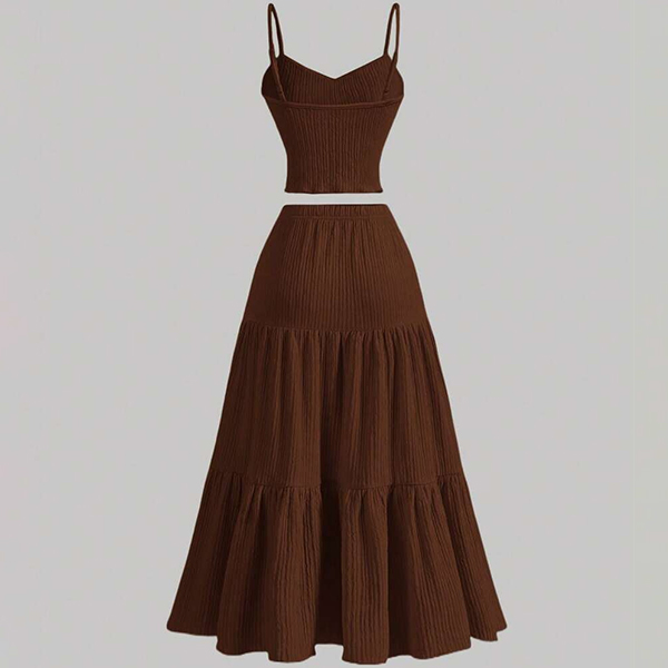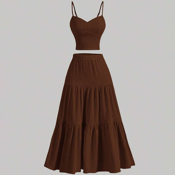 Ensemble moderne deux pièces unicolore avec caraco et jupe longue à volants