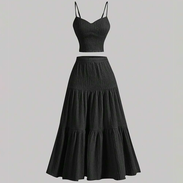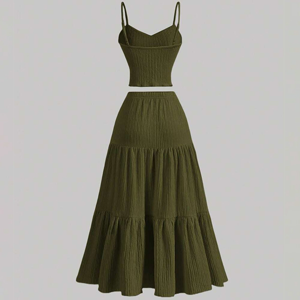 Cet ensemble deux pièces, composé d'un caraco et d'une jupe longue à volants, est élégant et polyvalent, alliant chic et sophistication moderne. Conçu dans un tissu de haute qualité et avec une attention particulière aux détails, cet ensemble est fait pour vous offrir élégance et confiance.