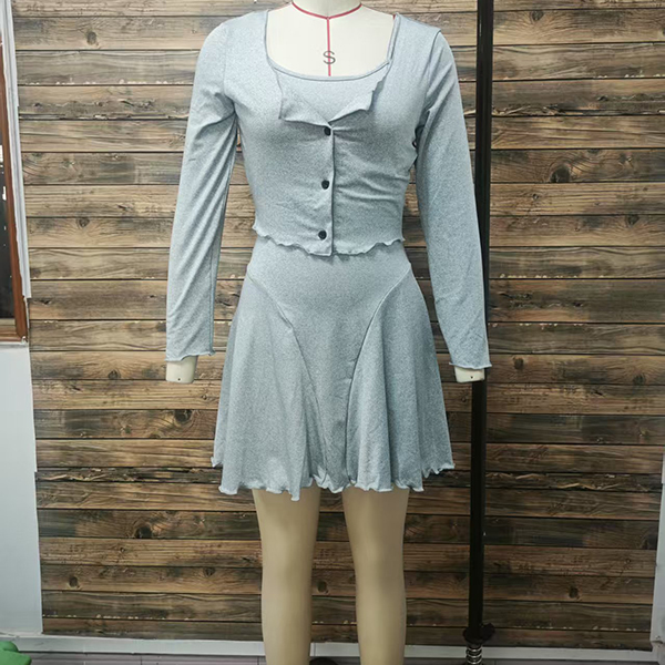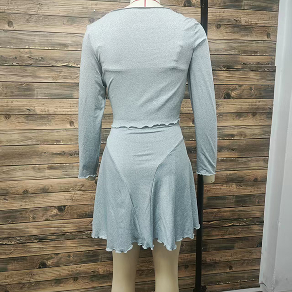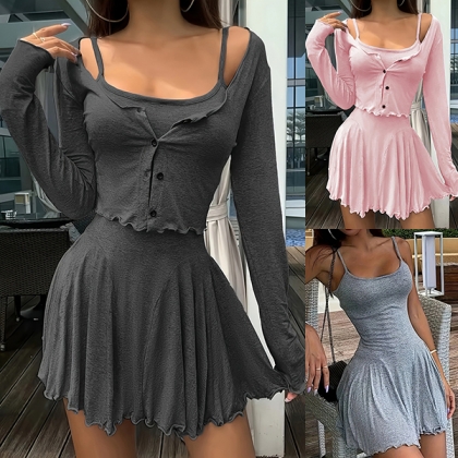 Fashion Solid Color Two-piece Set Consist of Crop Cardigan and Cami Ruffle Dress
