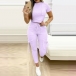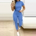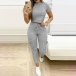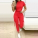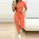 Fashion Solid Color Two-piece Set Consist of Crop Top and Skinny Pants with Side Patch Pockets