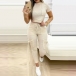 Make a bold fashion statement with this trendy two-piece set consists of a crop top and skinny pants with side patch pockets. The crop top adds a touch of modern and chic style, perfect for showing off a hint of skin. The skinny pants feature side patch pockets for added detail and functionality, giving the set a cool and edgy vibe. Is it your style?