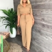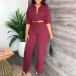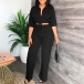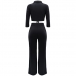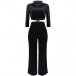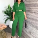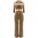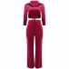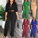 Fashion Solid Color Two-piece Set Consist of Crop Top and Straight-cut Pants with Side Pockets