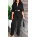 This is a chic and versatile ensemble that exudes modern sophistication. It consist of a crop top and a straight-cut pants with side pockets. This two-piece set is perfect for a variety of occasions, from a casual day out to a more semi-formal event.