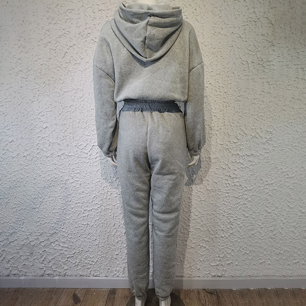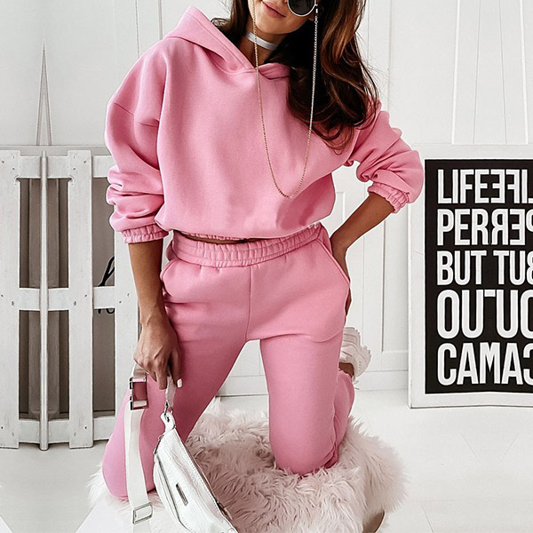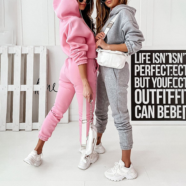 This two-piece set is perfect for any fashion-savvy individual. The drawstring hooded sweatshirt and sweatpants are both made of a solid color fabric, giving you a sleek and stylish look. The set is also comfortable and perfect for lounging around the house or running errands.