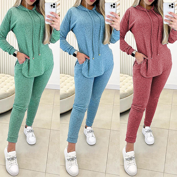 Fashion Solid Color Two-piece Set Consist of Hooded Shirt and Pants