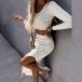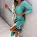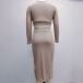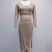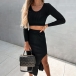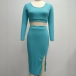 Fashion Solid Color Two-piece Set Consist of Long Sleeve Crop Top and Slit Skirt