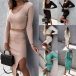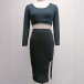 How about this two-piece set? The crop top is long sleeved and the skirt has a slit up the side. The set is a solid color, wanna have a try?