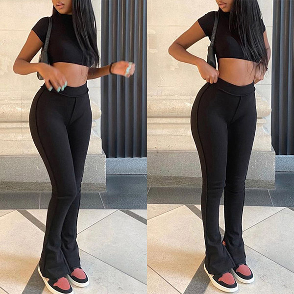 This set is made of a polyester and spandex blend that is stretchy and comfortable. Crop top with high waist pants for a sexy and fashion street look! Maybe you could have a try!