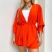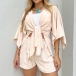 Fashion Solid Color Two-piece Set Consist of Self-tie Cardigan and Drawstring Shorts