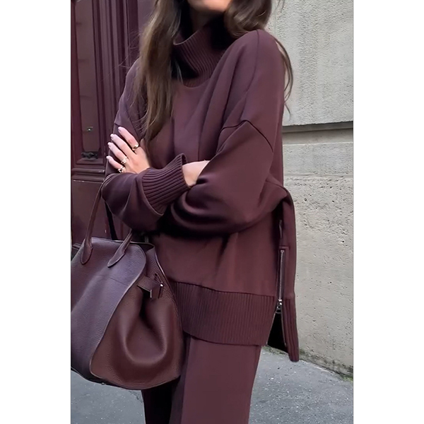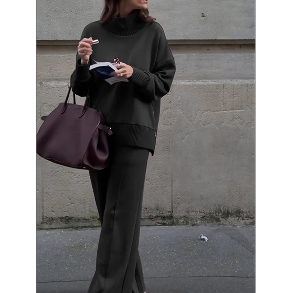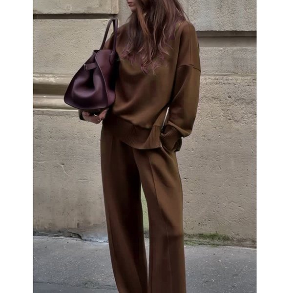 Fashion Solid Color Two-piece Set Consist of Shirt and Straight-cut Pants