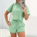 Composed of a short sleeve shirt and drawstring shorts in a classic solid color, this coordinated ensemble is the perfect choice for effortless everyday wear.
