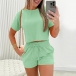 Fashion Solid Color Two-piece Set Consist of Short Sleeve Shirt and Drawstring Shorts