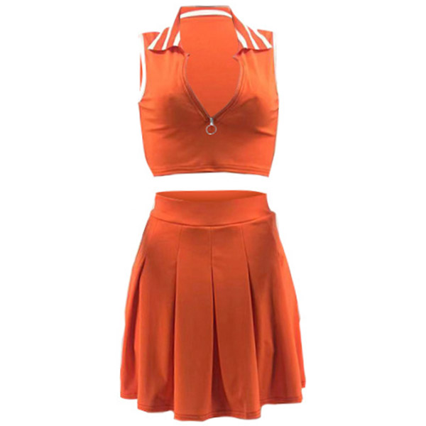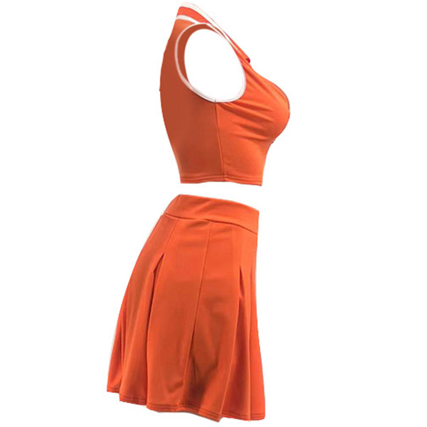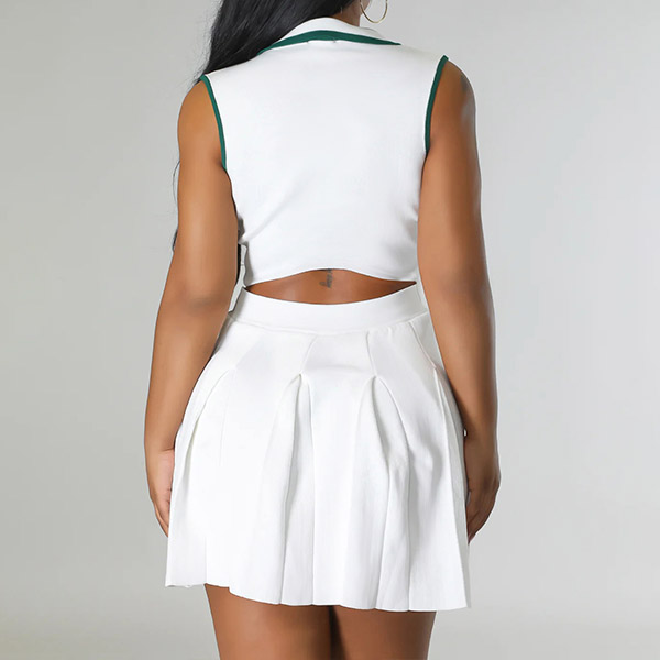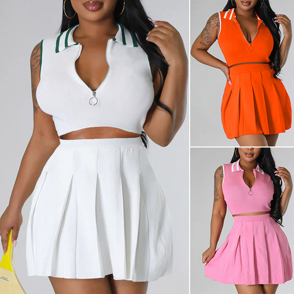 This set consists of a stand collar crop top and a pleated skirt, both made from high-quality fabric that is both comfortable and durable. Perfect sports wear!