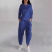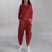 Fashion Solid Color Two-piece Set Consist of Sweatshirt and Sweatpants with Side Patch Pockets