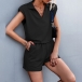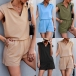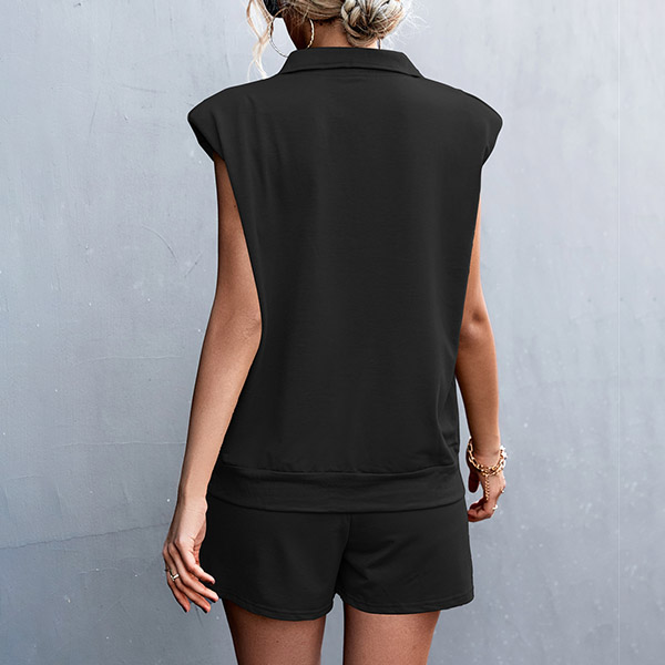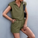 Fashion Solid Color Two-piece Set Consists of Stand Collar Shirt and Shorts