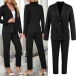Fashion Solid Color Two-piece Suit Set Consist of Lapel Blazer and Pants