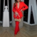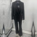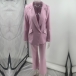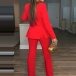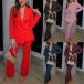 This suit set features a classic lapel blazer and straight-cut pants in a solid color, creating a timeless and chic outfit that can be worn for work, formal events, or special occasions.