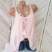 In these hot summer days,this cozy yet stylish top can easily arouse your attention. It comes with a sweet pink tone,with U-neck and a loose silhouette design,this piece can give you a long-lasting comfort. You can add a shinning necklace if you wanna look more charming.