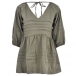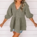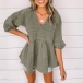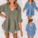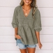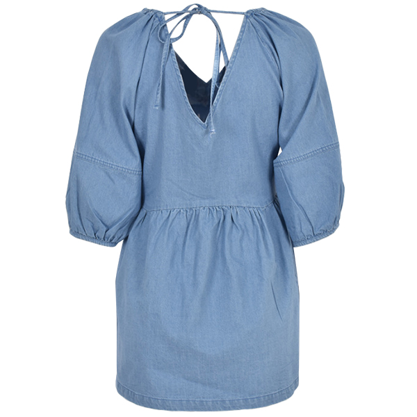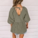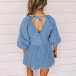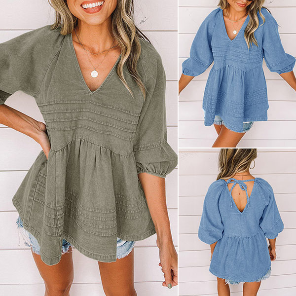 Fashion Solid Color V-Neck Backless 3/4 Sleeve Denim Top