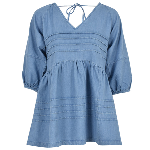 The top designed with denim fabric can be said to be never outdated clothing. Clothing has been developing since ancient times, but you can always find the trace of denim fabric. This piece crafted from the soft denim fabric, designed with the V-neck, backless and lace-up, which can make you look sweet and stylish.