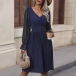 Featuring a V-neckline and long sleeves, this dress exudes a chic and classic vibe. The backless design adds a touch of allure and visual interest to the dress. The solid color adds a timeless and versatile element, making it suitable for various occasions. And the pleated detailing adds a feminine and elegant touch to the dress. Wanna have a try?