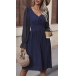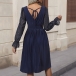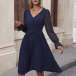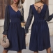 Fashion Solid Color V-neck Backless Long Sleeve Pleated Dress