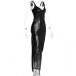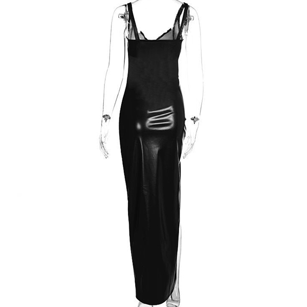Fashion Solid Color V-neck Backless Side Slit Artificial Leather PU Maxi Dress